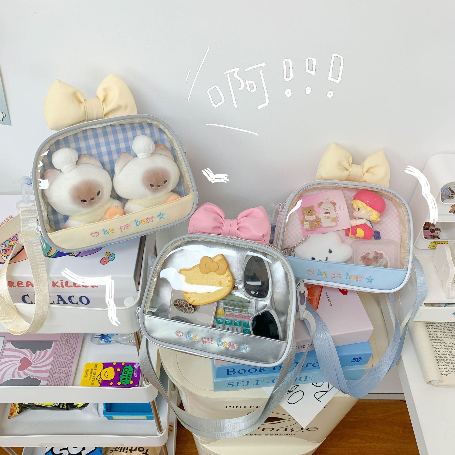 日系二次元マカロン色痛包斜め包小食量透明片肩学生10cm人形包谷子包