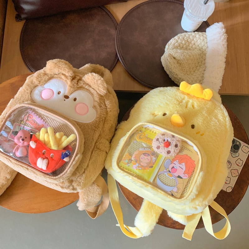 2025新型の毛のふわふわした肩の乳の黄色のひよこの痛みはリュックサックの個性のかわいい少女の心のリスの小さいリュックサックを包みます。