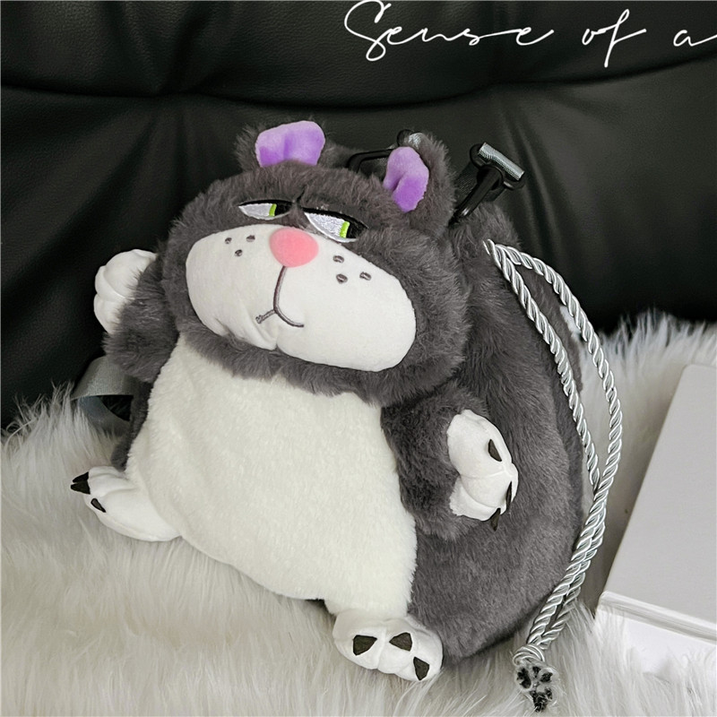 醜くて可愛いルシファー猫ショルダーバッグ、太った猫、かわいい猫、漫画風ぬいぐるみバッグ、女の子用ドール巾着斜め掛けバッグ