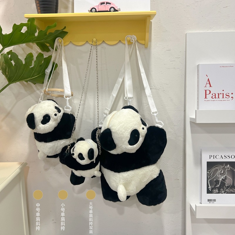 日本のかわいい毛のふわふわしたパンダのショルダーバッグ女性韓国版ins少女学生両用のぬいぐるみショルダーバッグ