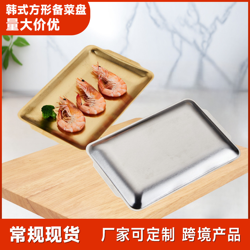 国境を越えた供給ステンレス鋼金メッキ長方形バーベキュープレートゴールデンプレート商業平底トレイ韓国風グリルパン