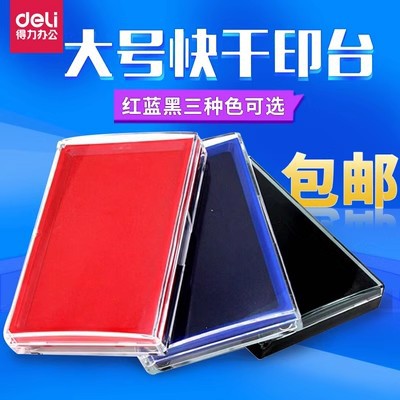 得力9864速乾印台財務捺印事務速乾印泥箱赤青黒赤泥角形