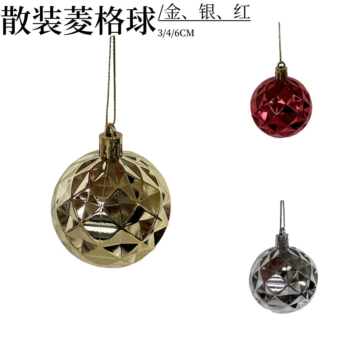 メーカー直送のバラ売り3/4/6CM真空メッキPSプラスチック菱形ボールクリスマスデコレーション工芸品アクセサリー