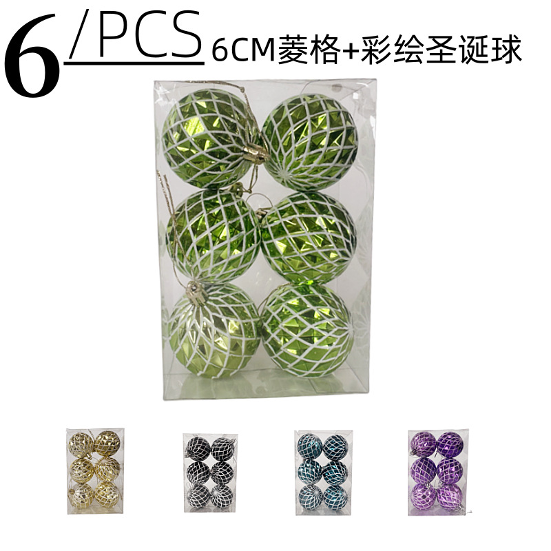 メーカーから直接供給、在庫処分、クリスマスモール装飾用の6CM菱形プラスチックボール6個セット(塗装済み)