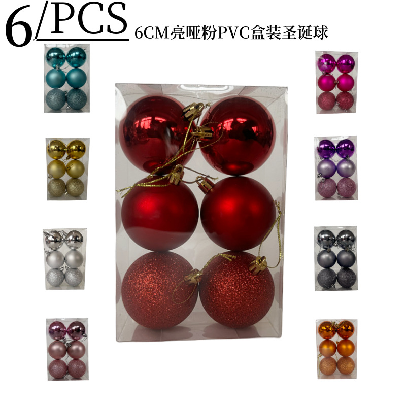 メーカー直供6cm6個メッキPSプラスチッククリスマスボール亮粉PVC箱入り祭りパーティー装飾ボール