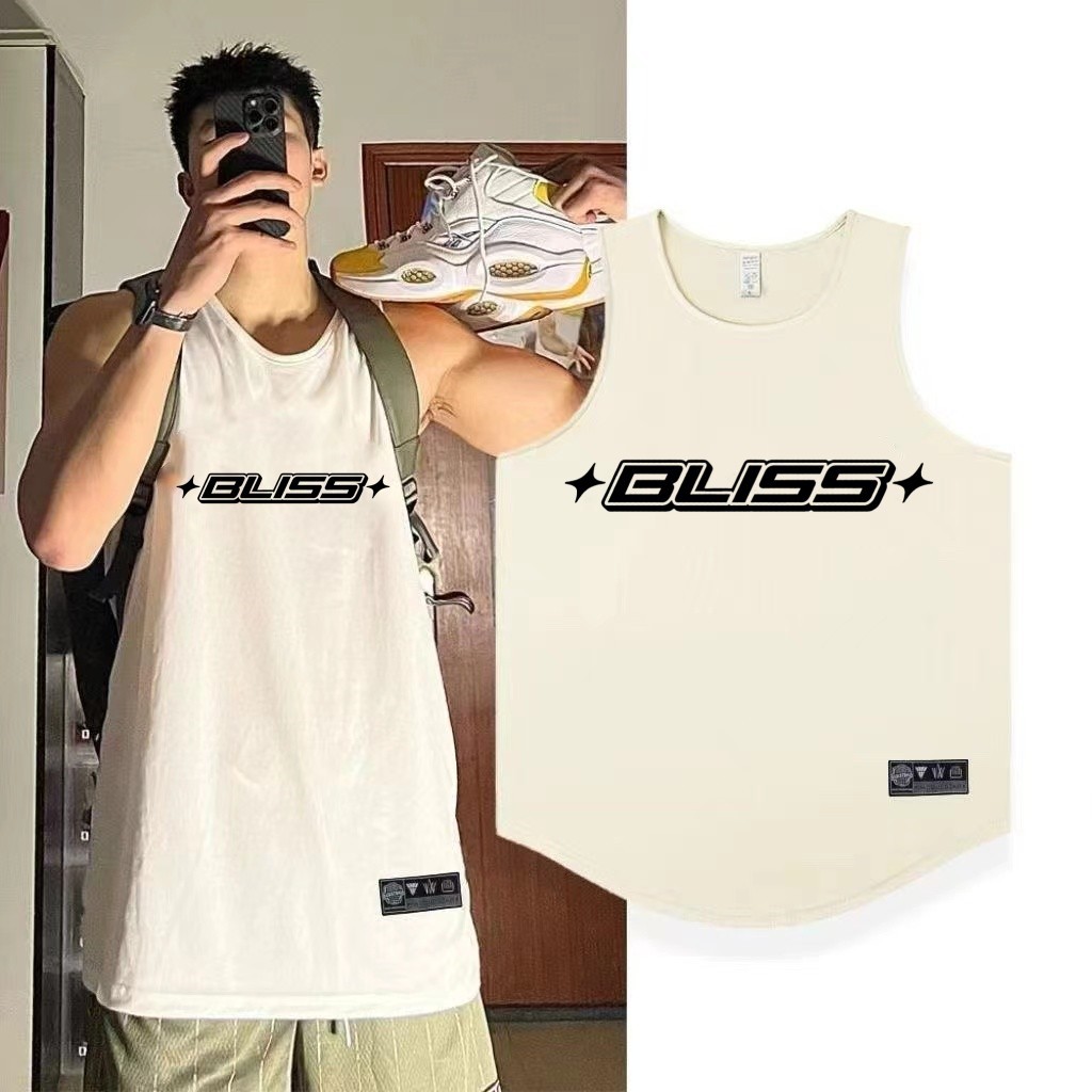 ノースリーブアルファベットノースリーブ速干ベストメンズtシャツ夏ゆるいカン肩スポーツ潮牌アルファベット鸟眼ベスト