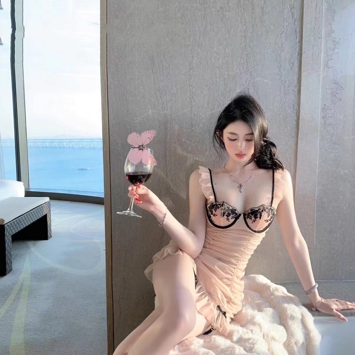 煕沐芬趣味下着レース透かし彫り純欲少女パジャマ夏の私房ストラップセクシーな家の寝スカート