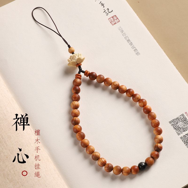 崖柏の携帯電話のひもの檀木の短い手首の縄の携帯電話のチェーンのペンダントの男女の携帯電話の紛失防止のペンダント