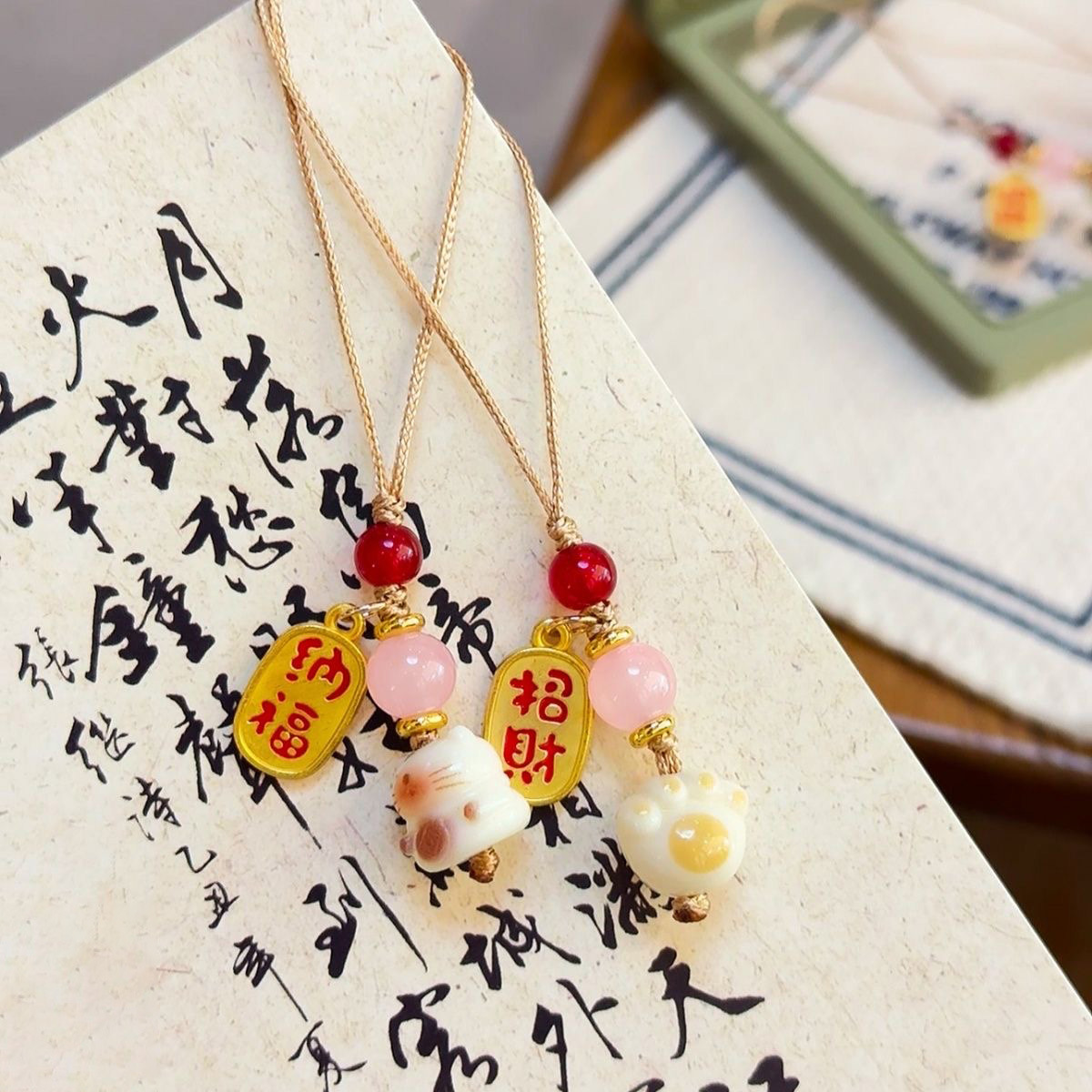 樹脂猫爪招財納福ブランド携帯ストラップカップル炭焼携帯ケースペンダント男女子ストラップ