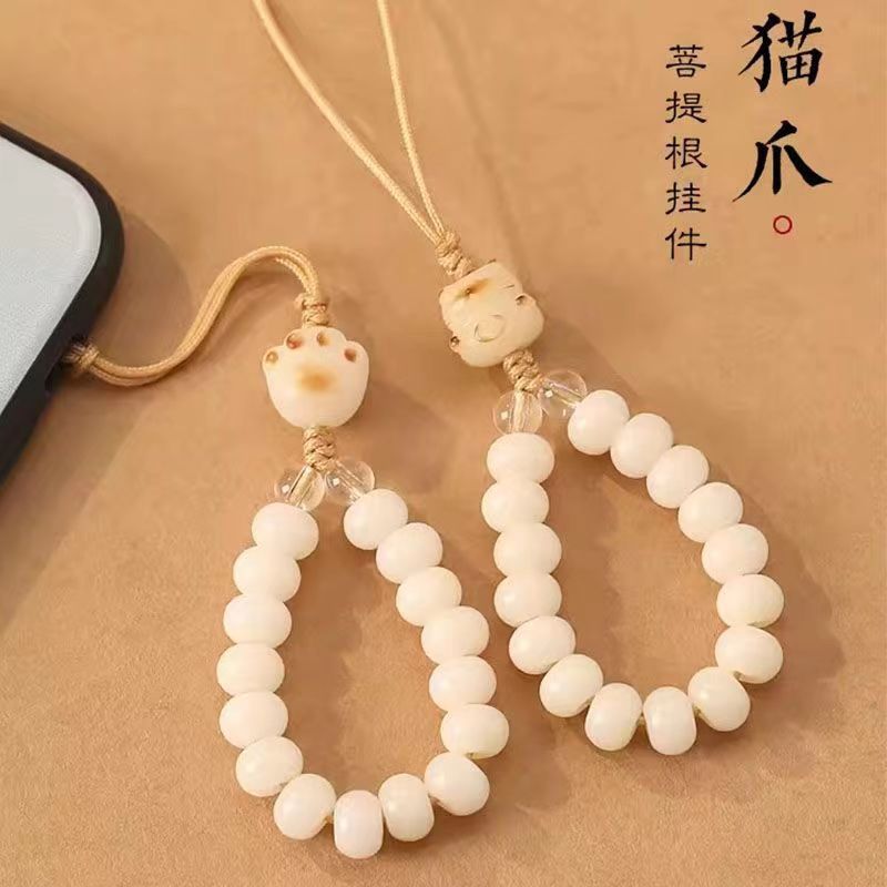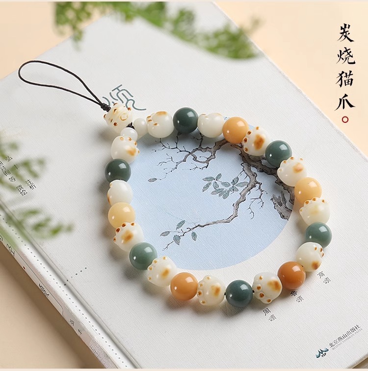 円珠菩提根炭焼猫の携帯チェーンの重要な女性の携帯電話の紛失防止アクセサリーのかわいい猫の爪の短い手首