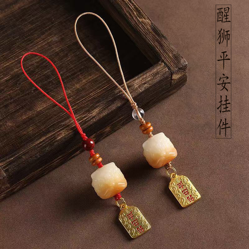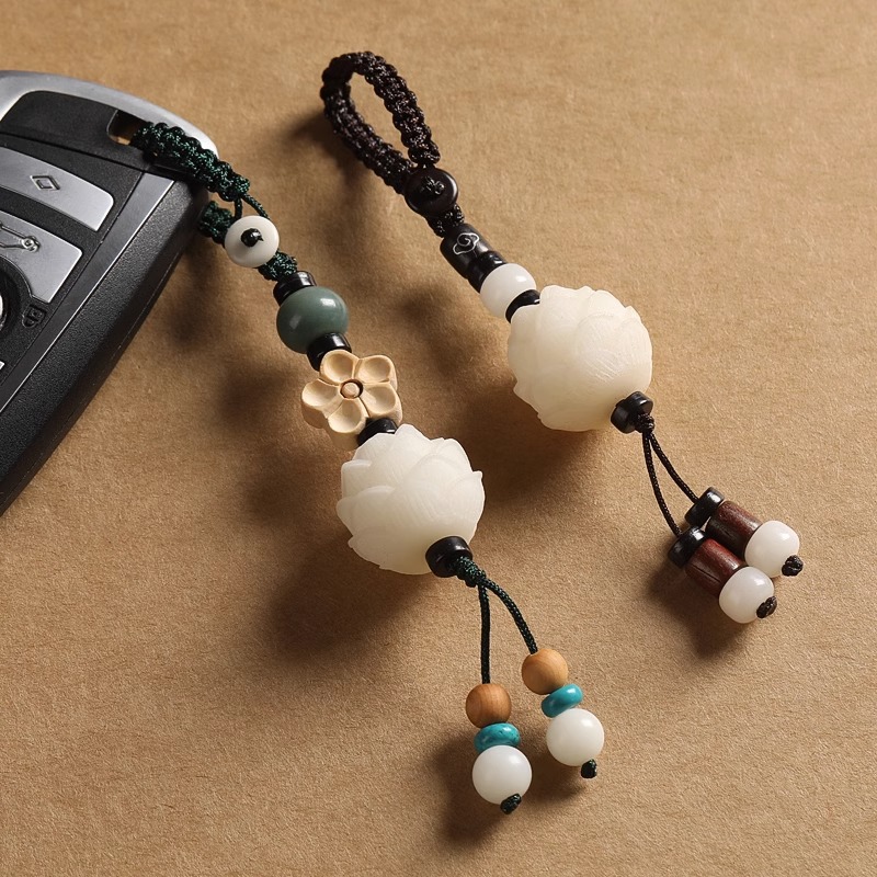 白玉菩提蓮のキーホルダーペンダント中国風高級車樹脂ペンダント創意カップルプレゼント
