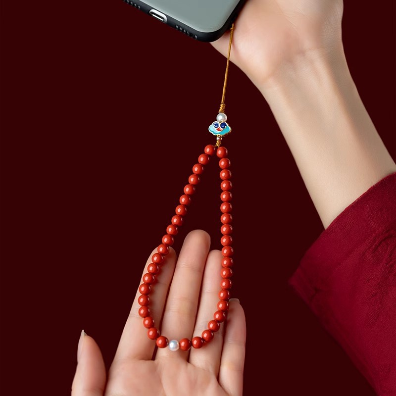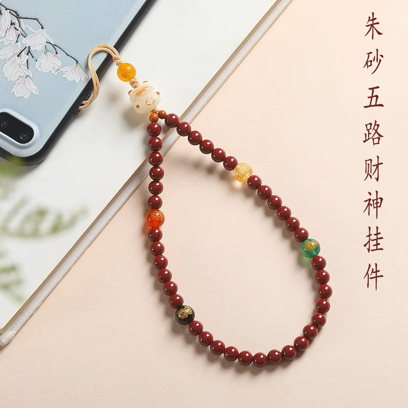 五路財神朱砂携帯ケースのペンダント女性紫金砂精致携帯電話のストラップの手首のタイプのビーズの携帯チェーンの男