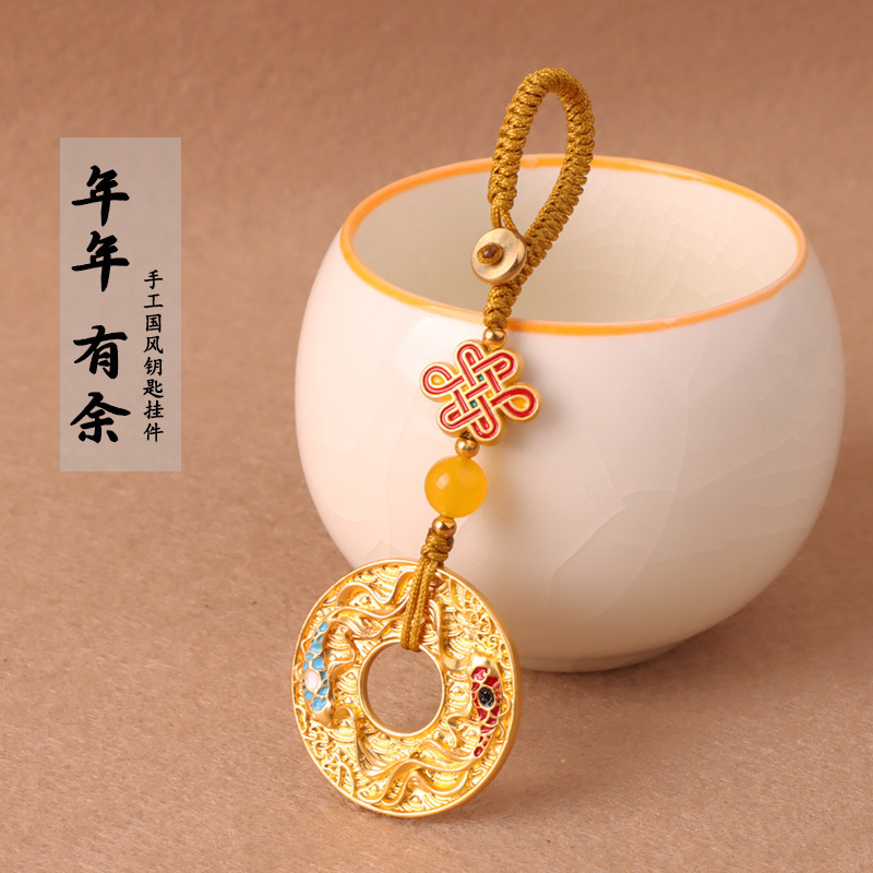 車の双魚キーホルダーセーフティロックペンダントクリエイティブ中国風のカップル手織りペンダント Douyin 人気ギフト