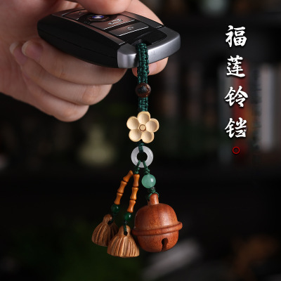 天然ピーチウッドベル車のキーホルダーペンダント風光明媚なエリア人気のジュエリー木製蓮の花桃の花キーホルダー男性と女性用
