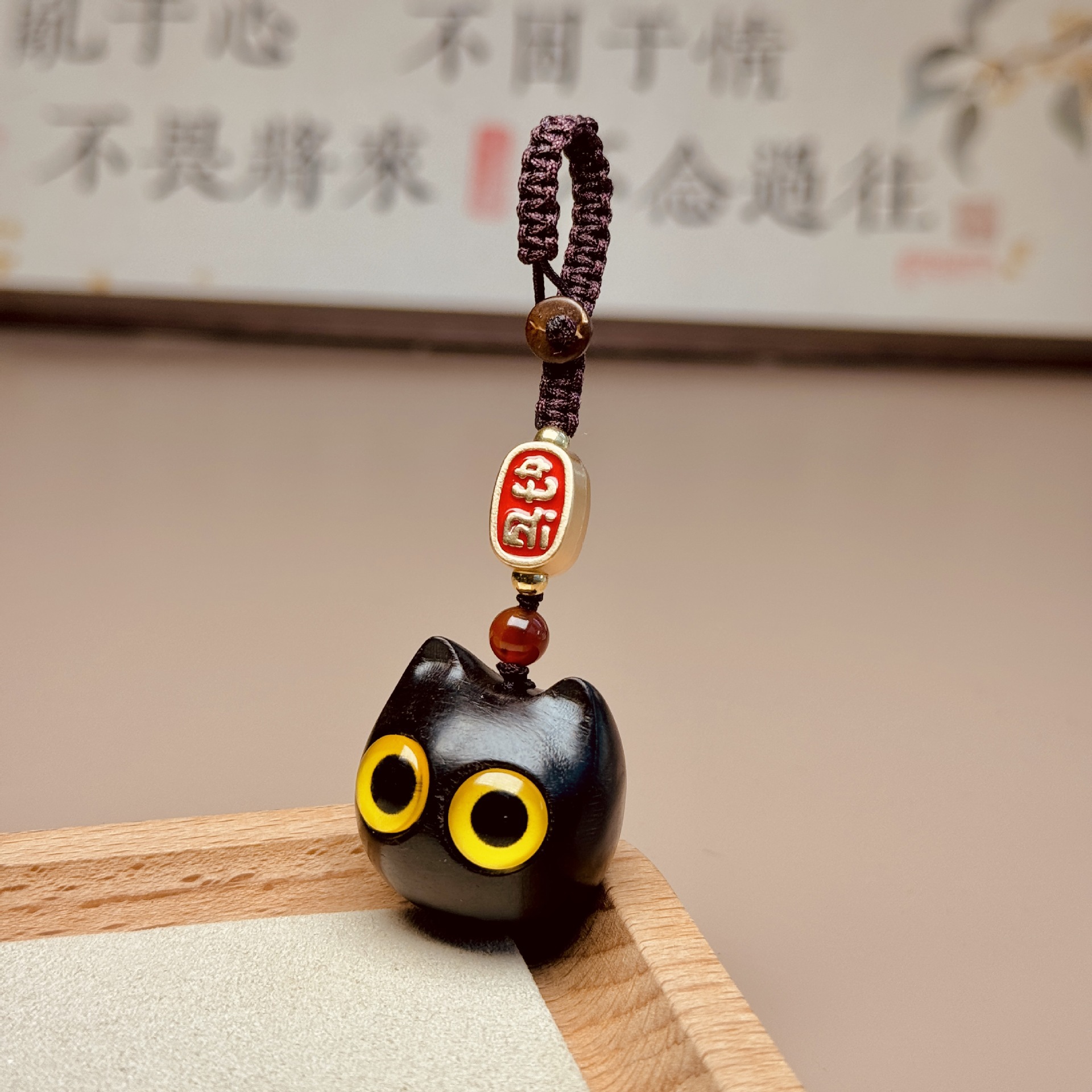 黒檀かわいい招財猫の携帯電話のキーホルダーの男女の精巧な鍵は携帯電話のチェーンのペンダントを掛けます。