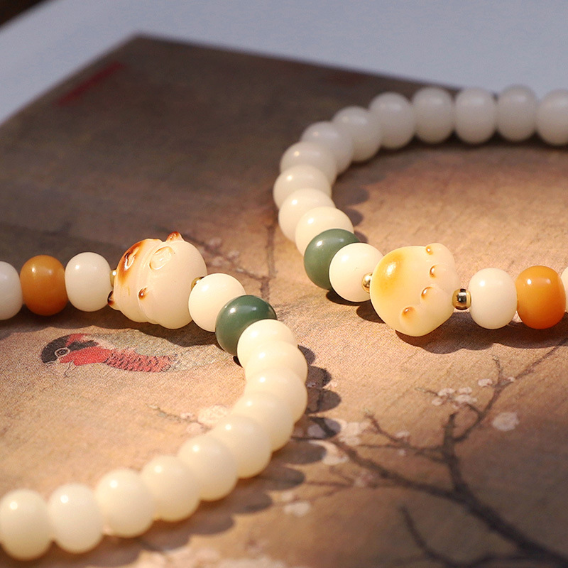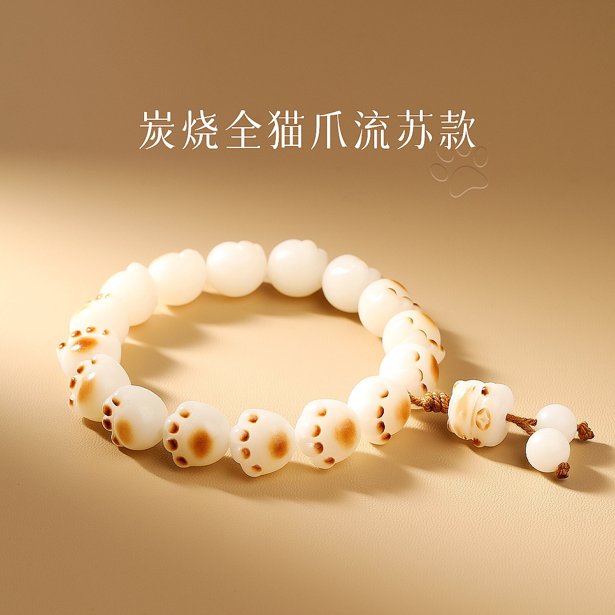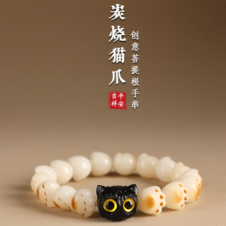 天然白玉菩提根手串男女単輪文遊びアクセサリーかわいい炭焼き猫爪ブレスレット文芸仏珠