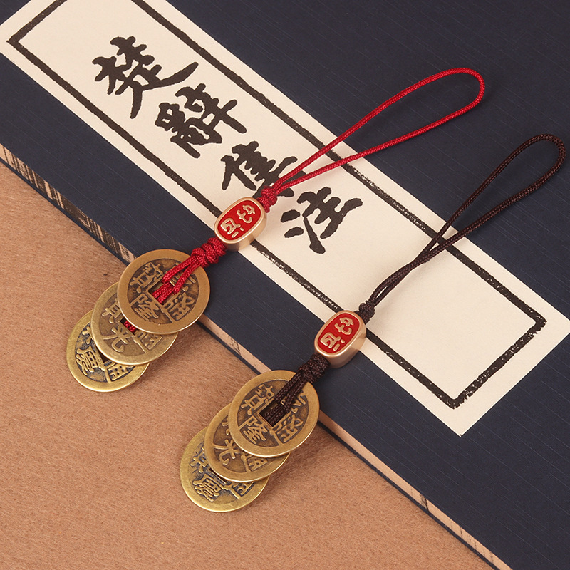 創意黄銅三帝のお金の自動車のキーは幸運の蓮の携帯のチェーンの縄を掛けます。