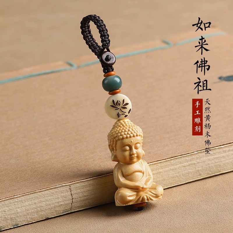ポプラの木の車のキーホルダーのストラップの手作り彫刻は仏のペンダントのようです。