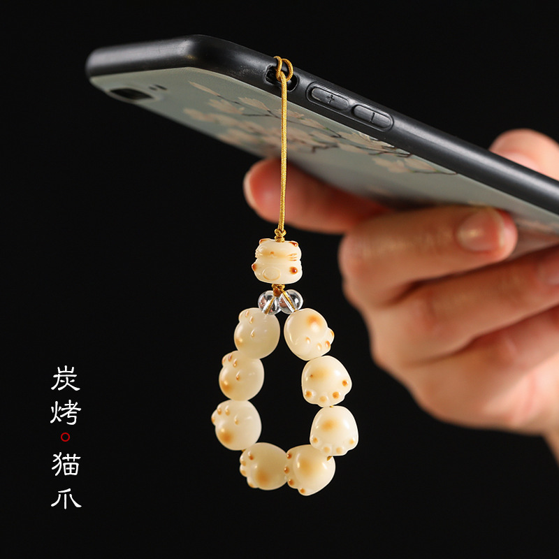 白玉菩提根炭焼猫爪携帯ストラップ女性モデルかわいい招き猫携帯ストラップ手首ストラップ紛失防止