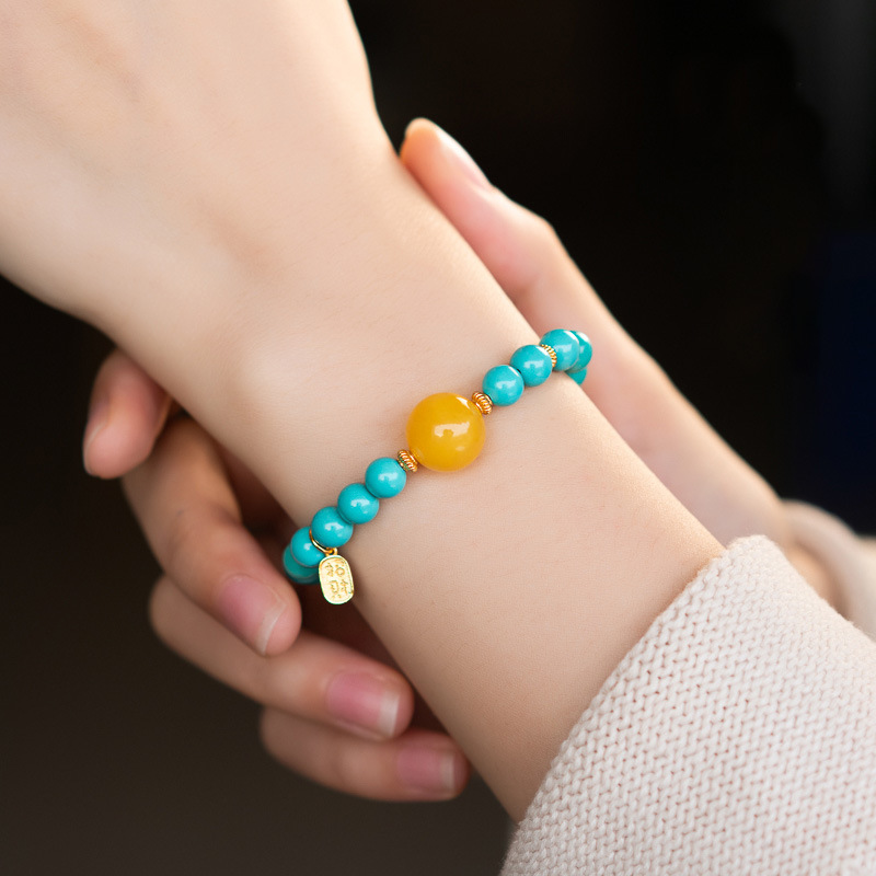 緑松石の手の串の皿は女子学生の蜜ろうのブレスレットの小さい大衆の玉の新しい中国式のアクセサリーの天然の原鉱の文を遊んで清露を遊びます。