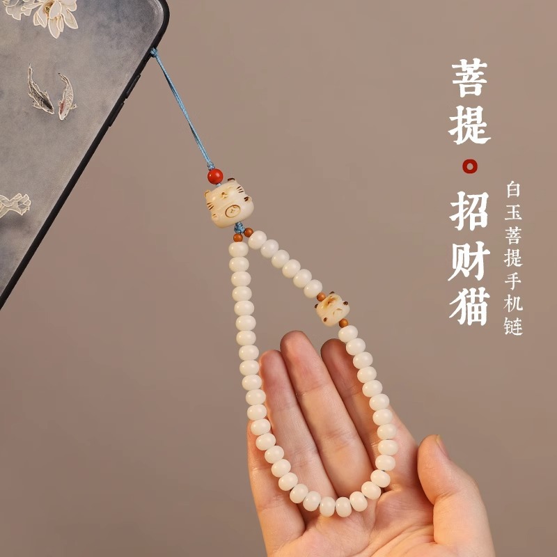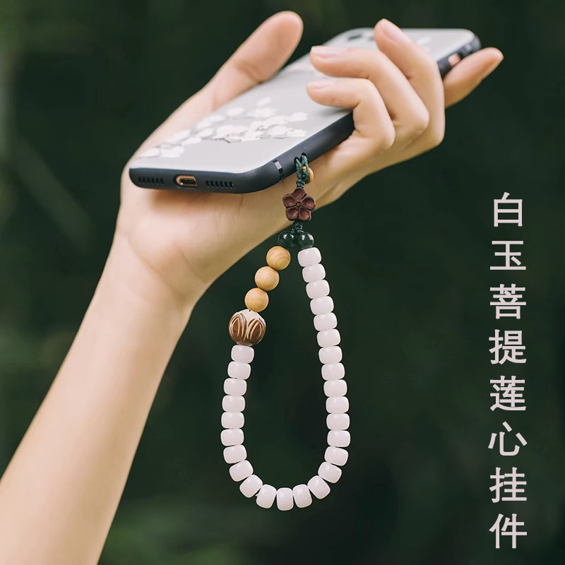 白玉菩提文芸携帯電話のチェーンを掛けます。