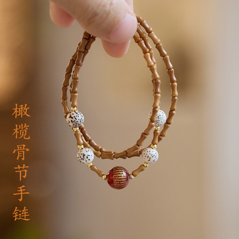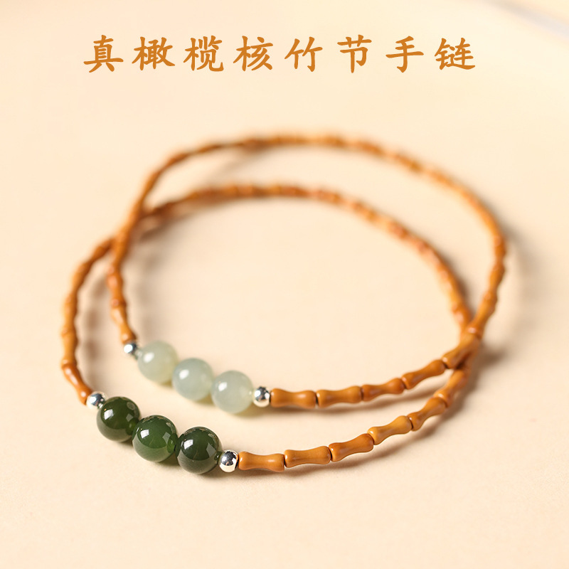 文芸森系田園風女の細い金のオリーブの核の竹の節と田玉の石は玉の輪の気質の小さい衆のブレスレットを回転します。