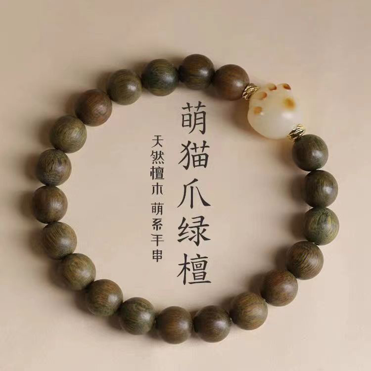 ダ鼎国風文創天然緑檀木猫爪手串単輪祈祷男女友人プレゼントブレスレット手串