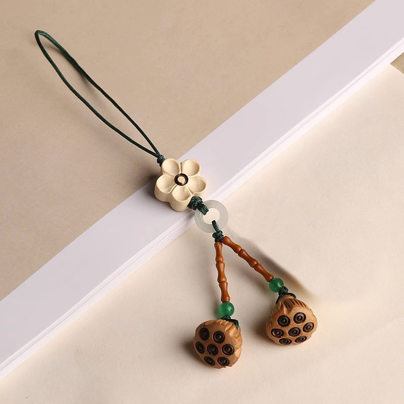 天然白玉菩提蓮の花の携帯ストラップ民族風蓮蓬文は自動車のキーホルダーを遊んでチェーンを掛けて男女を卸売りします。