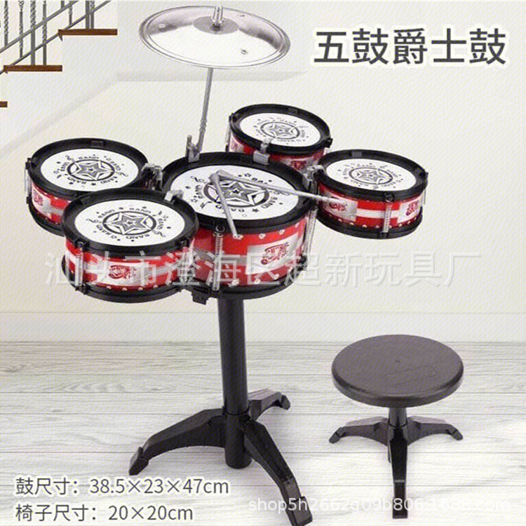 卸売子供の 5 つのドラムジャズドラム + 椅子音楽おもちゃ打楽器赤ちゃん男の子早期教育玩具 3-6 歳