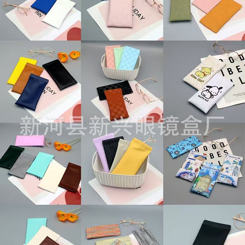 2023新型十字模様pvcサングラス収納袋自動閉鎖弾ポケット編み鏡布付きメガネ袋