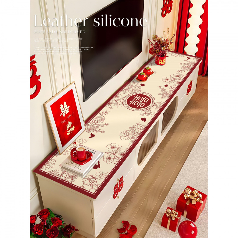 結婚式のテレビキャビネットテーブルクロス赤お祝い靴カウンタートップ革保護マットサイドボードロングテーブルマット