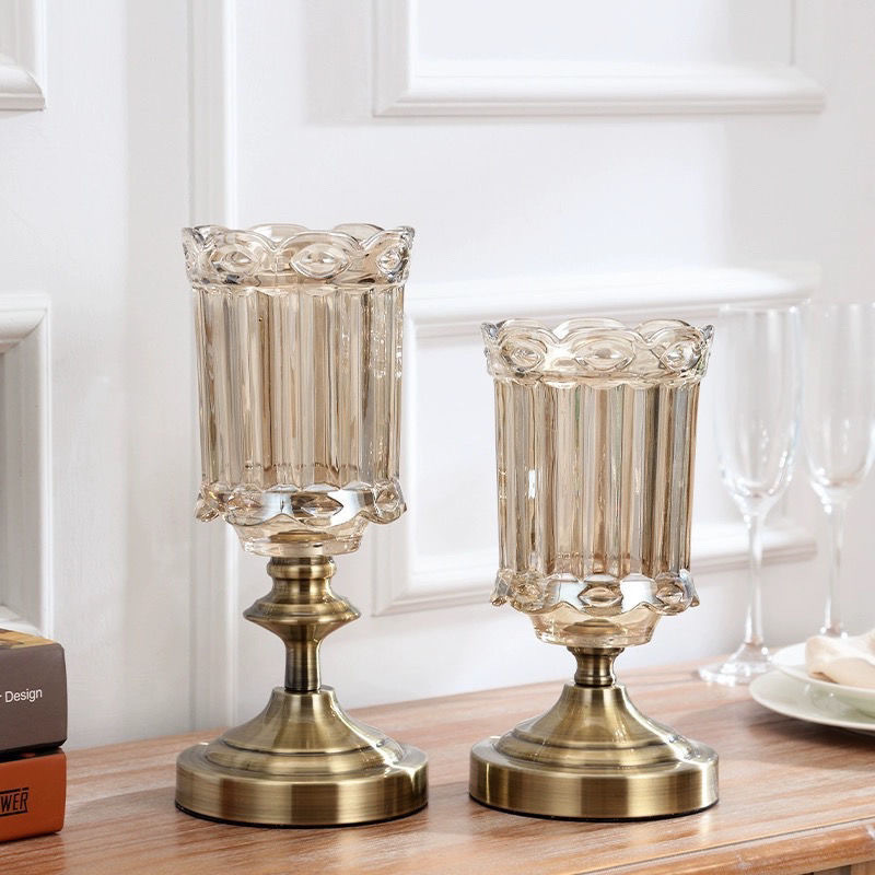 ヨーロッパの古典的なライト高級ガラス花瓶の装飾品リビングルームフラワーアレンジメントダイニングテーブルレトロ家の装飾Shangxuqi