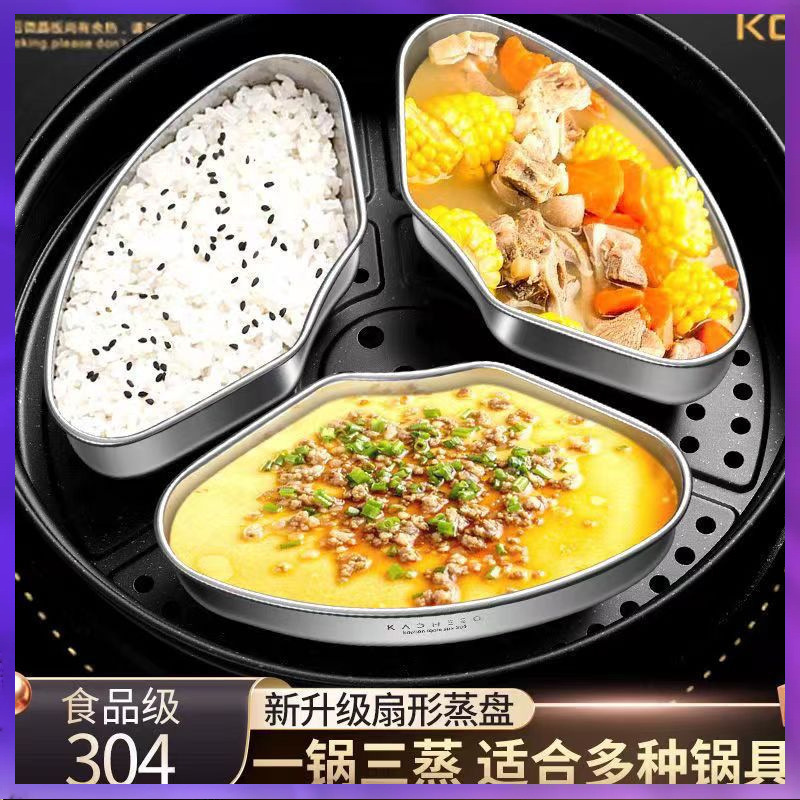 ✅ 【】304ステンレス蒸し格子家庭用扇形蒸し箱蓋付き分離蒸しトレイ炊飯器蒸し器多潮州