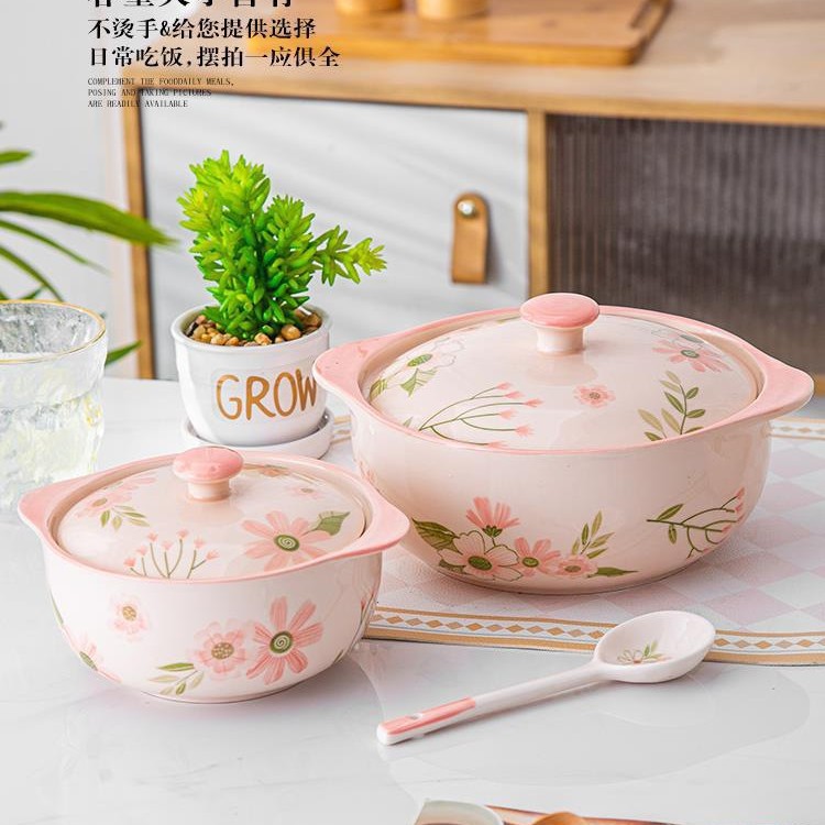 両耳スープボウル、スープボウル、家庭用大型食器、軽い高級カタツムリヌードルボウル、蓋付きインスタントラーメンボウル、セラミック大型サイズ、ノンフレンドリー