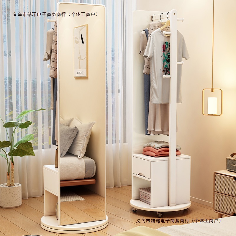引き出し付き一体型ホームベッドルームハンギングバッグ回転メールフィッティングミラー無垢材ドレッシングミラーフロアミラー送料無料