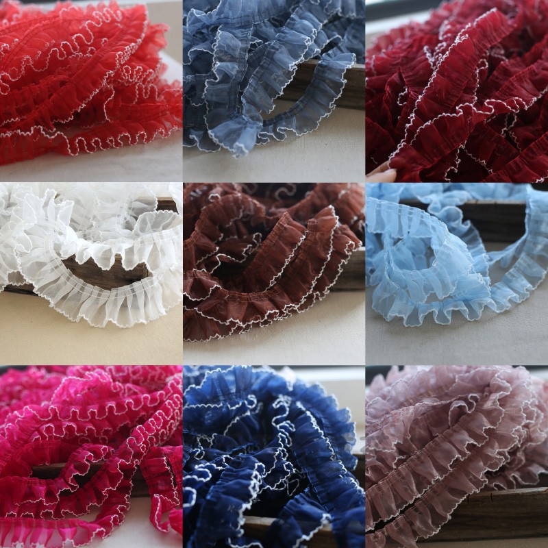 。 4 センチメートル幅オーガンザシャーリング犬歯エッジ立体レースホームファブリックロリータ靴と帽子衣類手作り DI