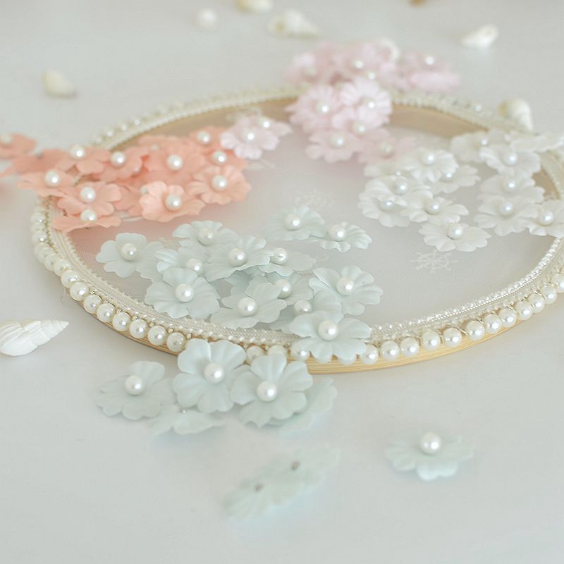 卸売サテン立体しわ花びらフラワーパーツマットパールミニフラワーパーツアクセサリー手作り5フラワー幅2cm