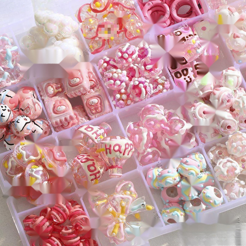 ヘビーデューティーピンクシリーズ手描き素材パッケージ車吊り下げDIYアクセサリーブレスレットビーズ特殊形状ルースビーズ漫画ビーズデフォルト