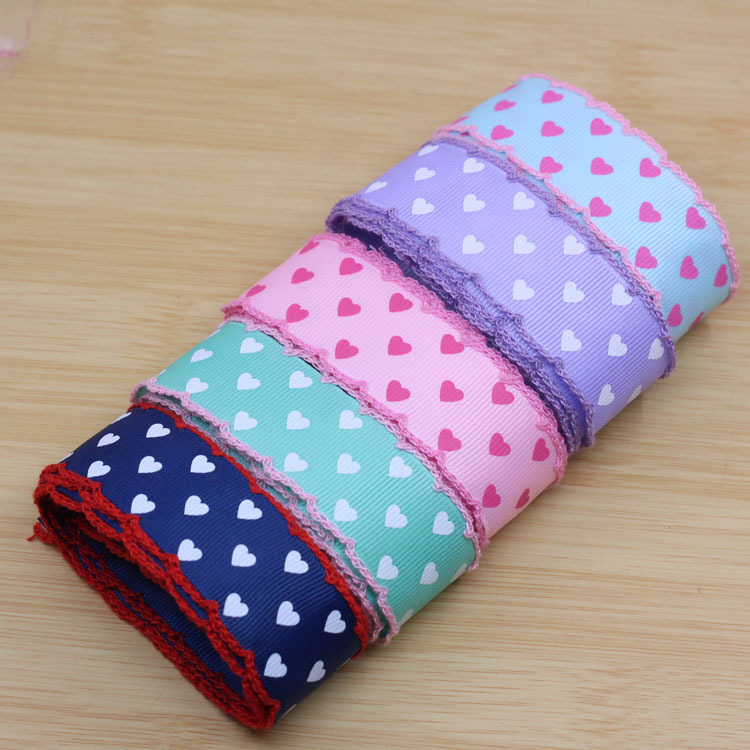 25 ミリメートルフックエッジプリントピーチハートリブリボン DIY 手作りヘアアクセサリー素材弓リボン作成アクセサリー