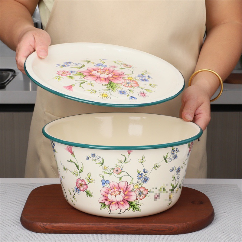 極厚エナメル平蓋ボウル、蓋付きエナメルボウル、餃子詰め物ボウル、蓋付き深スープボウル、ラードボウル、サラダボウル