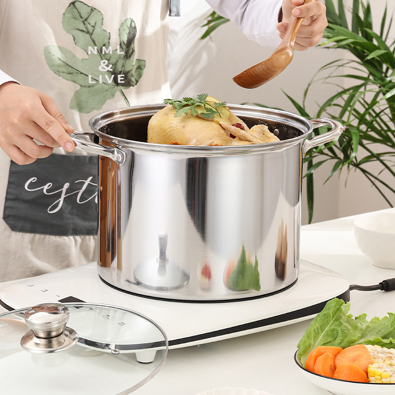 スープポット、ステンレス鍋、家庭用スープシチューポット、電磁調理器、ガスストーブ、万能調理鍋、厚みのある大容量マリネバケツ