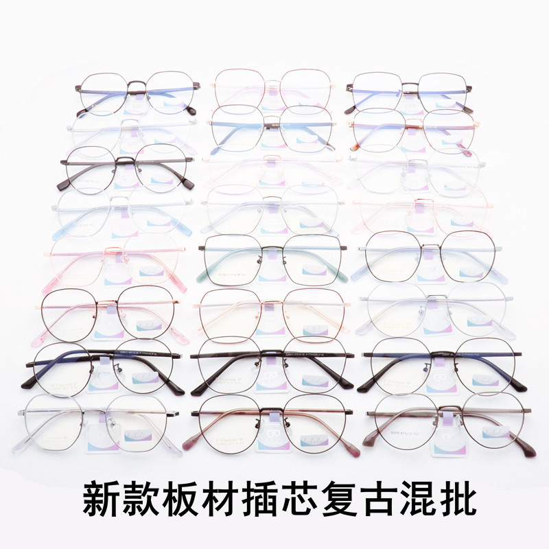 つば広シルクレトロラウンドメガネフレーム卸売トレンディな男性と女性のメタルフレーム混合バッチ文学近視メガネフレームラージフレーム