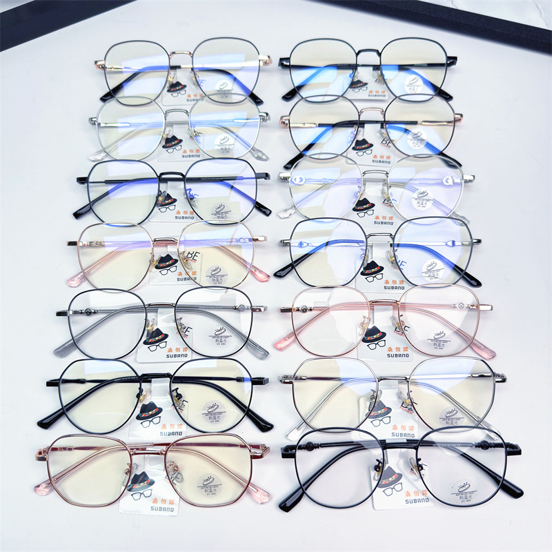 新型ブルーレイ防止メガネフレーム特価金属近視メガネフレームレトロ円形厚辺幅多角形コンピューターミラー
