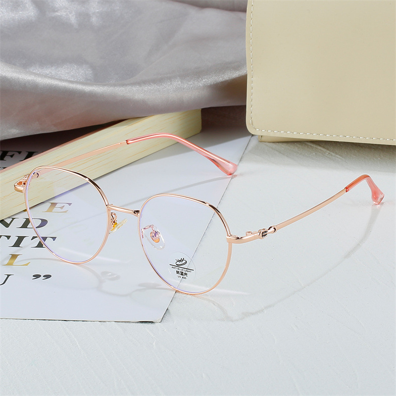 新型文芸復古女子学生金属眼鏡フレーム男卸売り楕円形平光鏡小柄復古コンピューター鏡