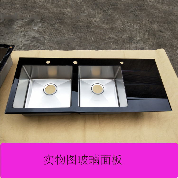 ヨーロッパ向け輸出用キッチンステンレスシンク、手作りのダブルシンク、板付き洗い桶、食器洗いシンク、強化ガラスシンク