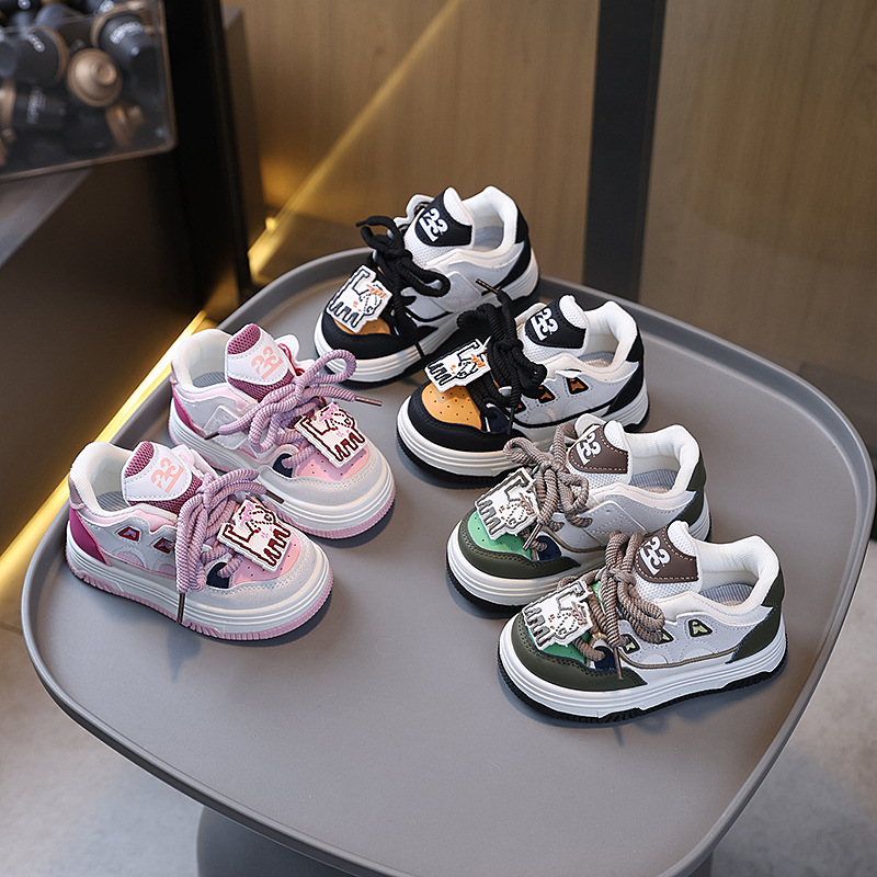 子供用スポーツシューズソリッドソール 2025 春と秋の男の子漫画スニーカー女の子ソフトソールカレッジスタイルシューズベビーシューズ