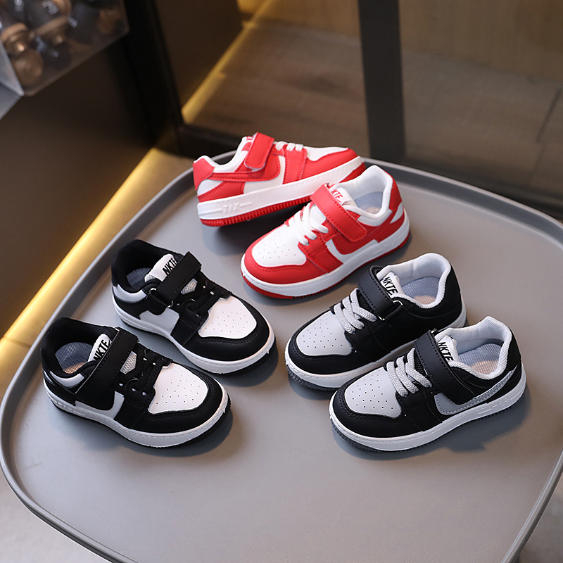 Dunk黒と白のパンダの子供の運動靴2024春秋モデルの男の子の中実の底板の靴の女性の赤ちゃんのマジックは靴を貼ります。