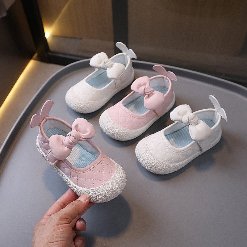 2024秋の女の子の王女の靴韓国版の女の子のマジックは服の靴の女性の赤ちゃんの蝶結びの四角の靴を貼ります。