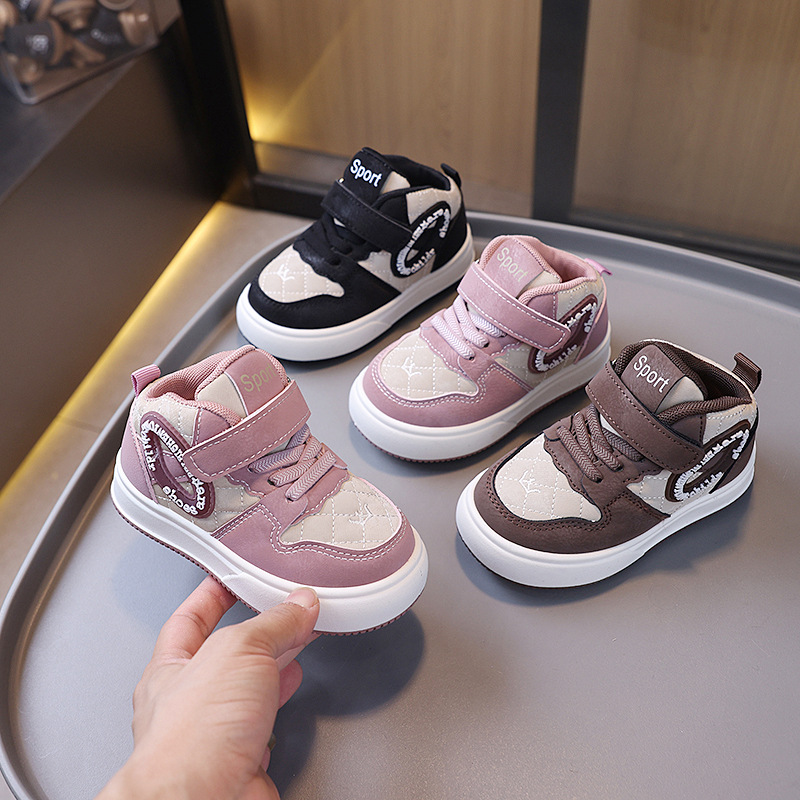 子供用スポーツシューズ2025春秋新作男の子ハイカットカジュアルシューズ幼児カレッジスタイルスニーカー女の子ベビーシューズ