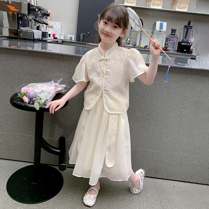 新中国式女の子夏ワンピースセット2025新型夏服プリンセススカート子供国風スカート洋風